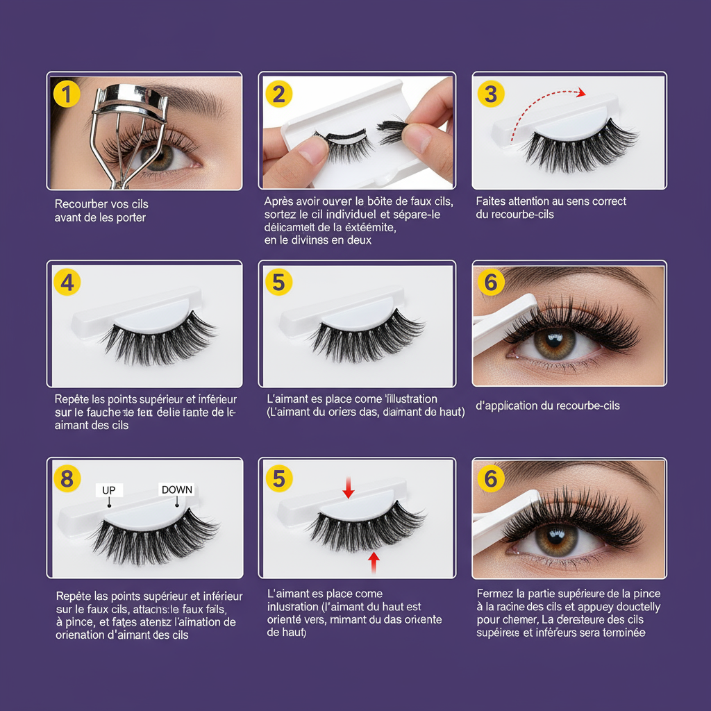 Simplifiez votre routine beauté avec des faux cils magnétiques sans colle, offrant une application rapide et sans effort pour un résultat impeccable.